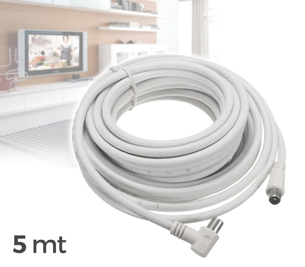 Câble fantastique pour connecter votre téléviseur à l'antenne, bobine de 5 mètres, connexion TV coaxiale avec impédance 75OHM, en PVC blanc.