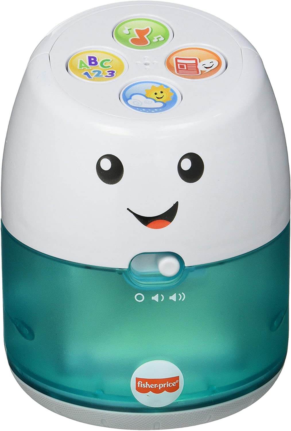 Assistant jouet avec lumières, chansons et phrases pédagogiques. Le jouet réagit aux bruits et aux babillages de bébé, tout comme un véritable assistant ! Les 4 boutons en haut activent les sons d'animaux, la playlist musicale et les chansons et phrases éducatives sur l'alphabet, comment compter, les couleurs et la météo. Le joli visage, les lumières multicolores et la base qui bascule au toucher aident bébé à rester occupé.