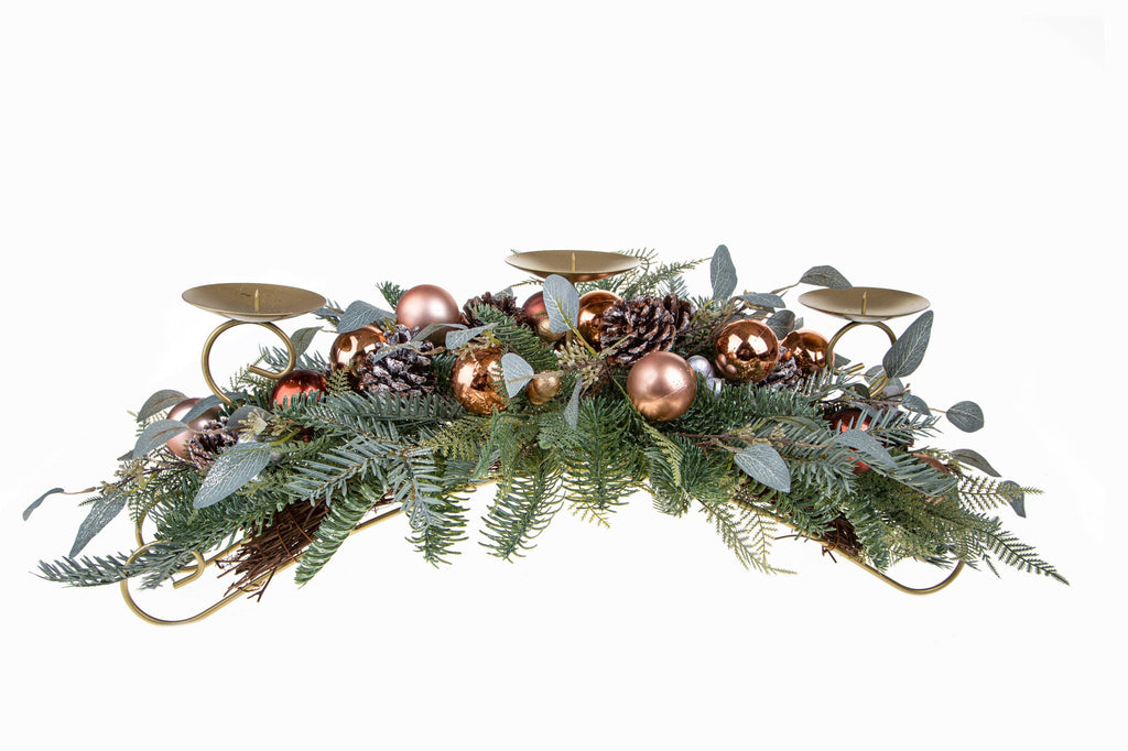 Centre de Table de Noël 72 cm pour 3 Bougies avec Sphères Décoratives