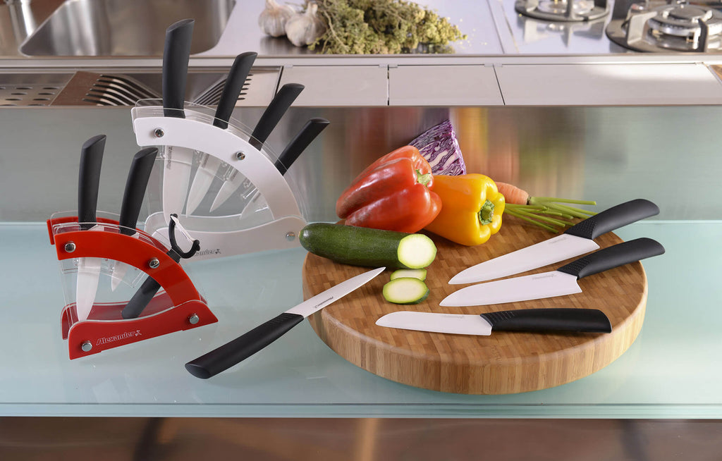 Afficher un bloc à couteaux design dans votre cuisine est le choix de ceux qui recherchent des lames fiables et professionnelles mais aussi de l'élégance et du raffinement , le mélange parfait représenté par le bloc à couteaux en céramique "Vela".