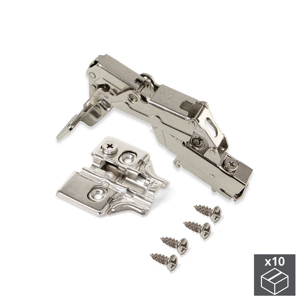Charnière Coupelle 35 mm Col Haut 165° Fermeture Amortissante Avec Base 10 Pièces Emuca
