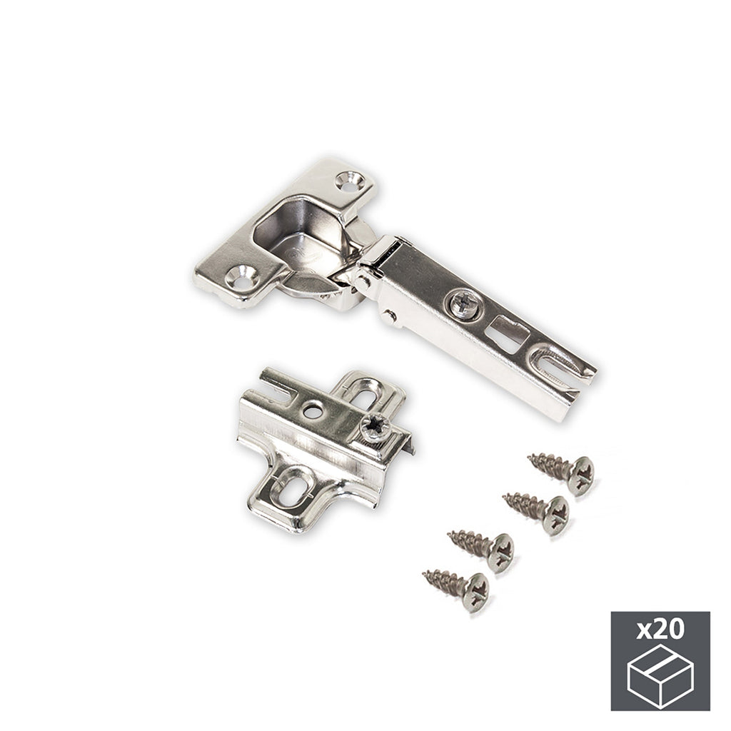 Charnière à coupelle 35 mm col droit 110º base à vis 20 pièces Emuca