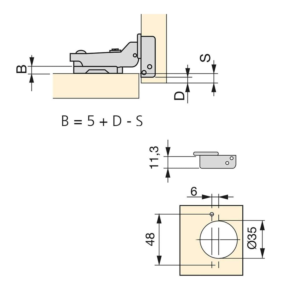 En même temps, l'installation est très simple grâce au système de fixation automatique par clips de la charnière à la base. De plus, les deux disposent d’une vis excentrique pour un réglage rapide et pratique.