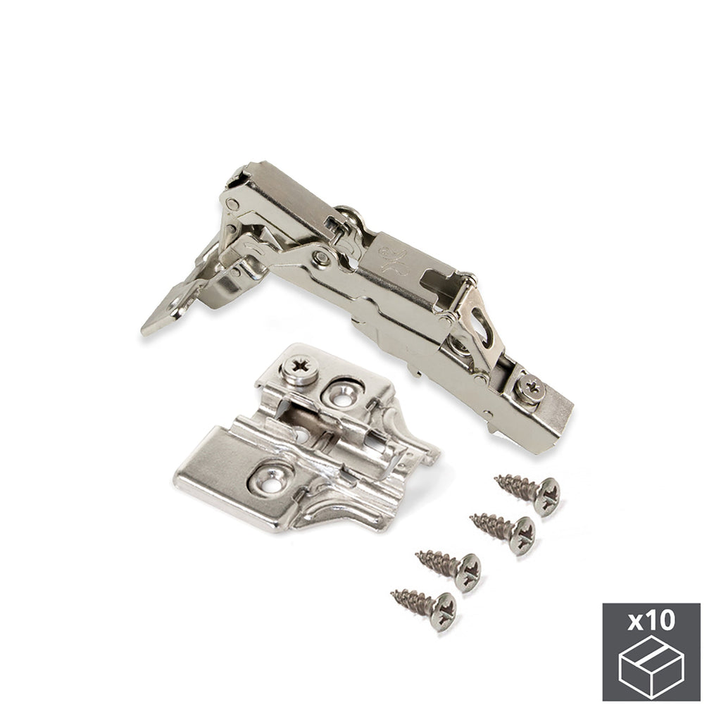 Charnière en coupelle X91 Fermeture amortie Ouverture à 165º Base à vis nickelée Emuca