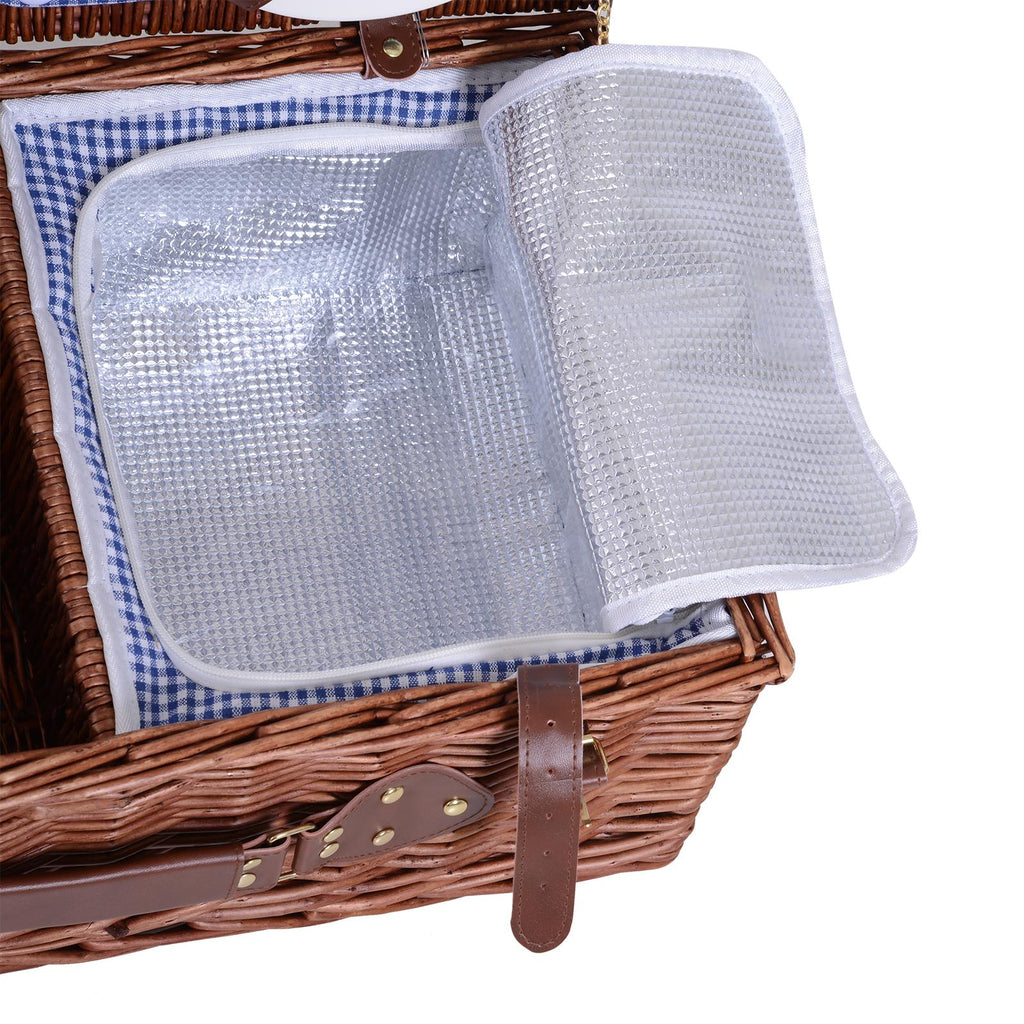 Panier Pique-Nique pour 4 Personnes Couverts Assiettes Verres et Accessoires Osier Marron 54x34x20 cm