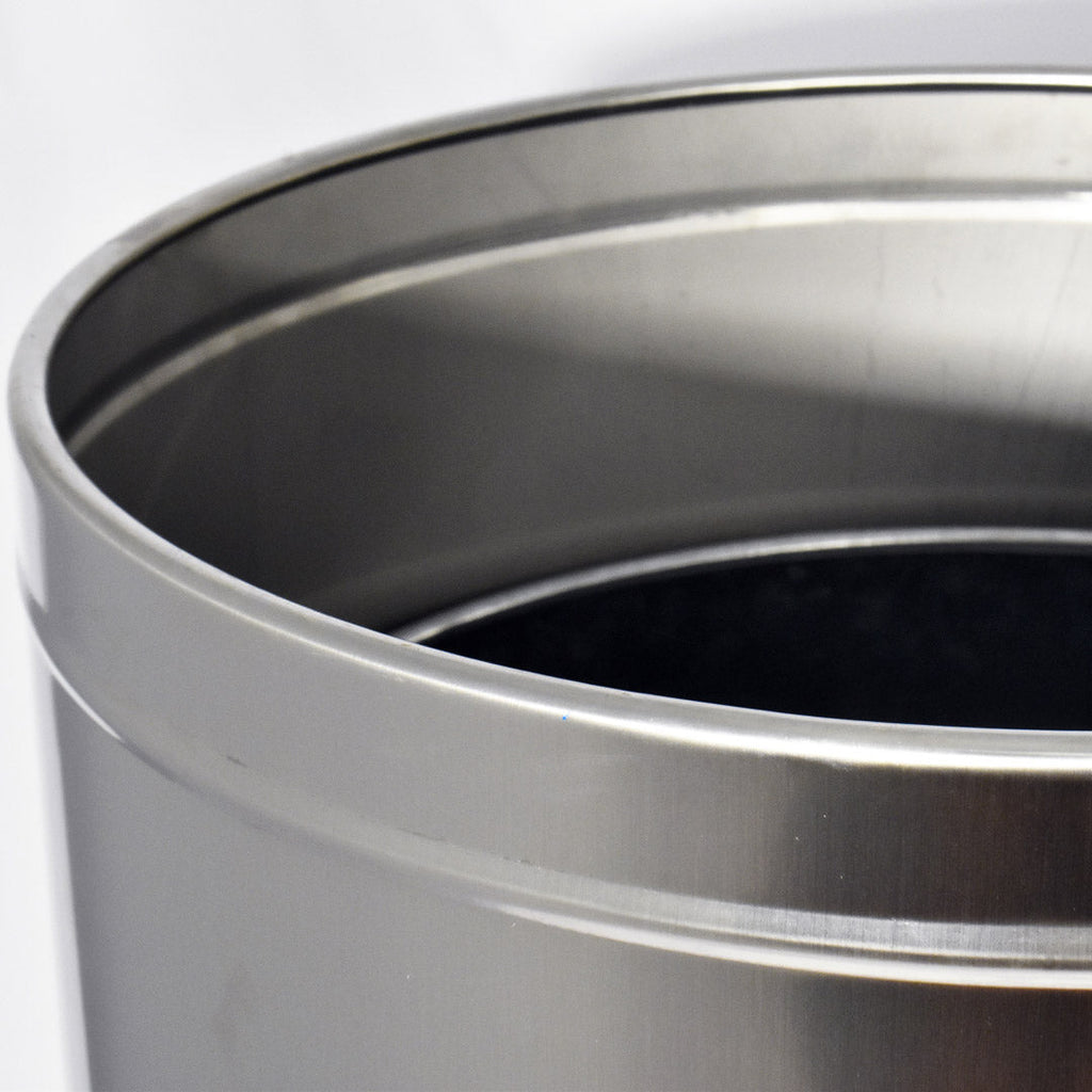 Poubelle ronde en acier équipée de caoutchouc périmétrique inférieur antidérapant. La poubelle interne amovible facilite le vidage des déchets et est équipée de deux poignées.