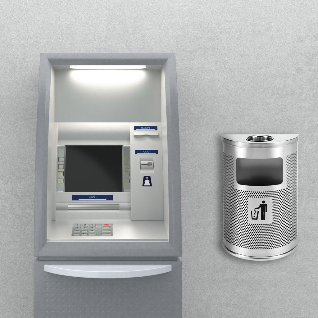 - Corbeille avec cendrier semi-circulaire en acier micro-perforé