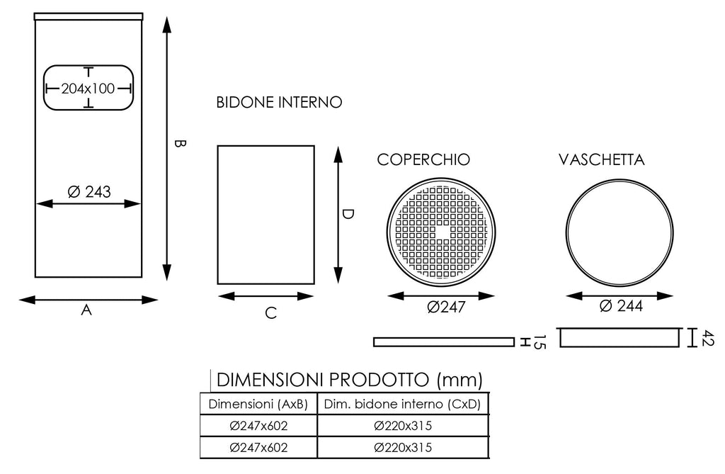 - Dimensions intérieures du bac (ØxH) : 22x31,5 cm