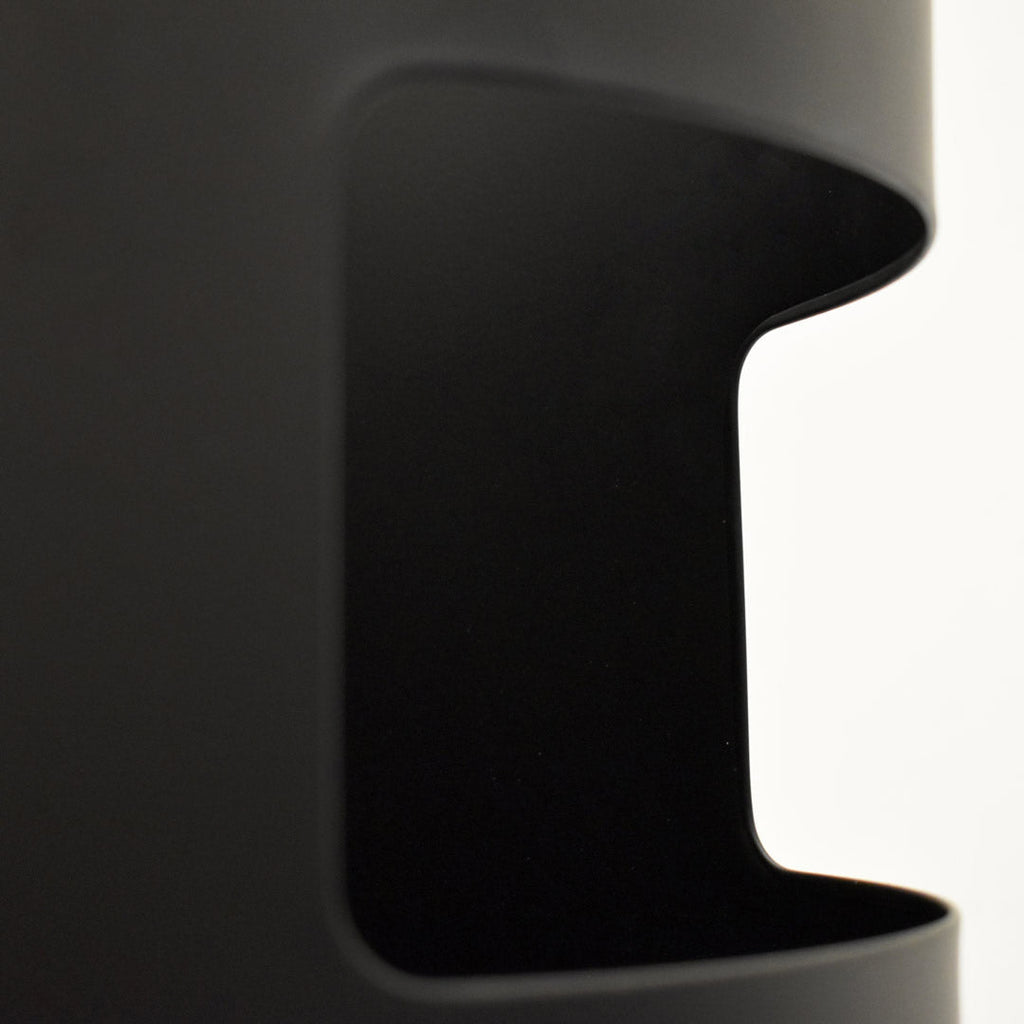 Corbeille à papier avec cendrier rond en métal thermolaqué noir mat avec grand trou frontal pour jeter le papier. La poubelle interne amovible facilite le vidage des déchets et est équipée d'une poignée.