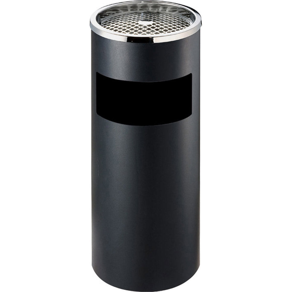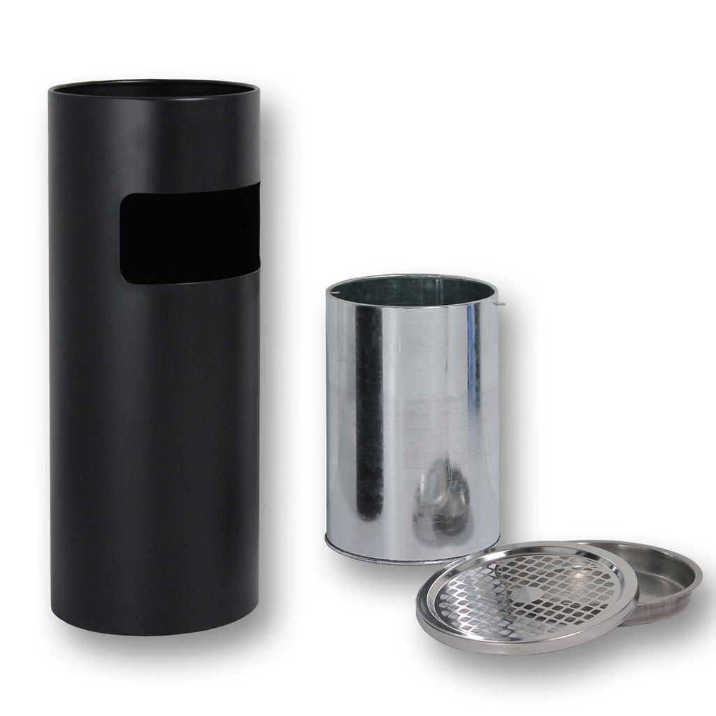 - Corbeille à papier ronde avec cendrier en métal thermolaqué noir mat