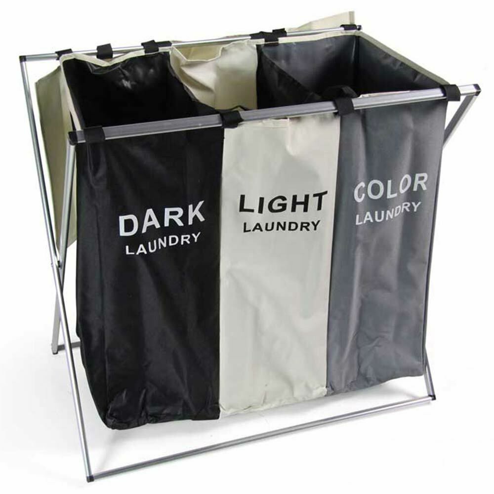Dividi e conserva la biancheria sporca in questo bellissimo Cesto portabiancheria a 3 scomparti per la biancheria chiara, scura e colorata!