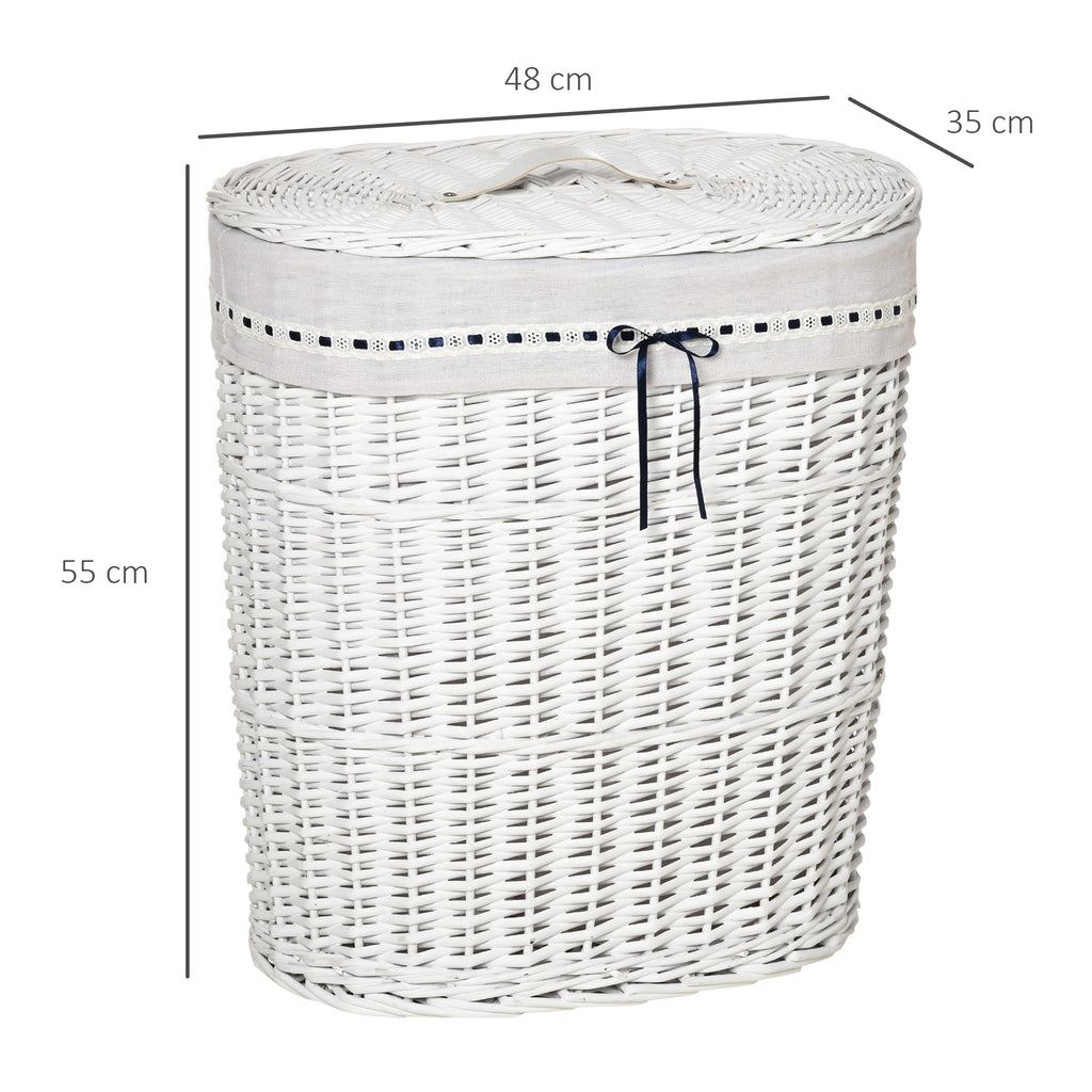 Panier à linge en osier 51x38x57 cm avec couvercle et sac intérieur blanc