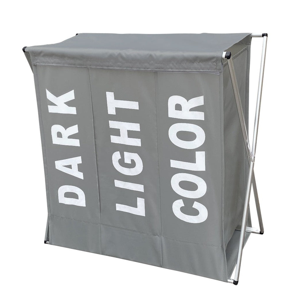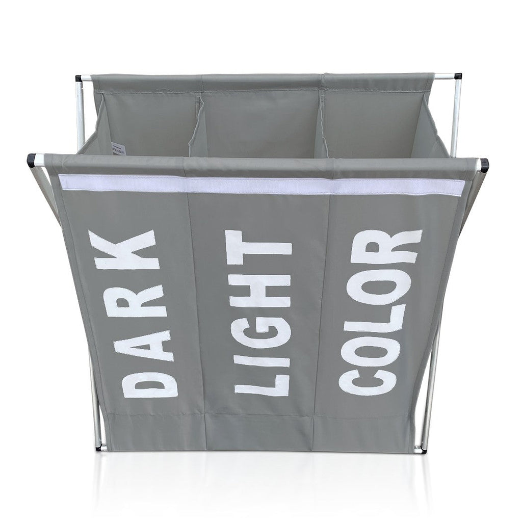 Panier à Linge 63x61x32 cm 3 Compartiments en Aluminium Gris Foncé