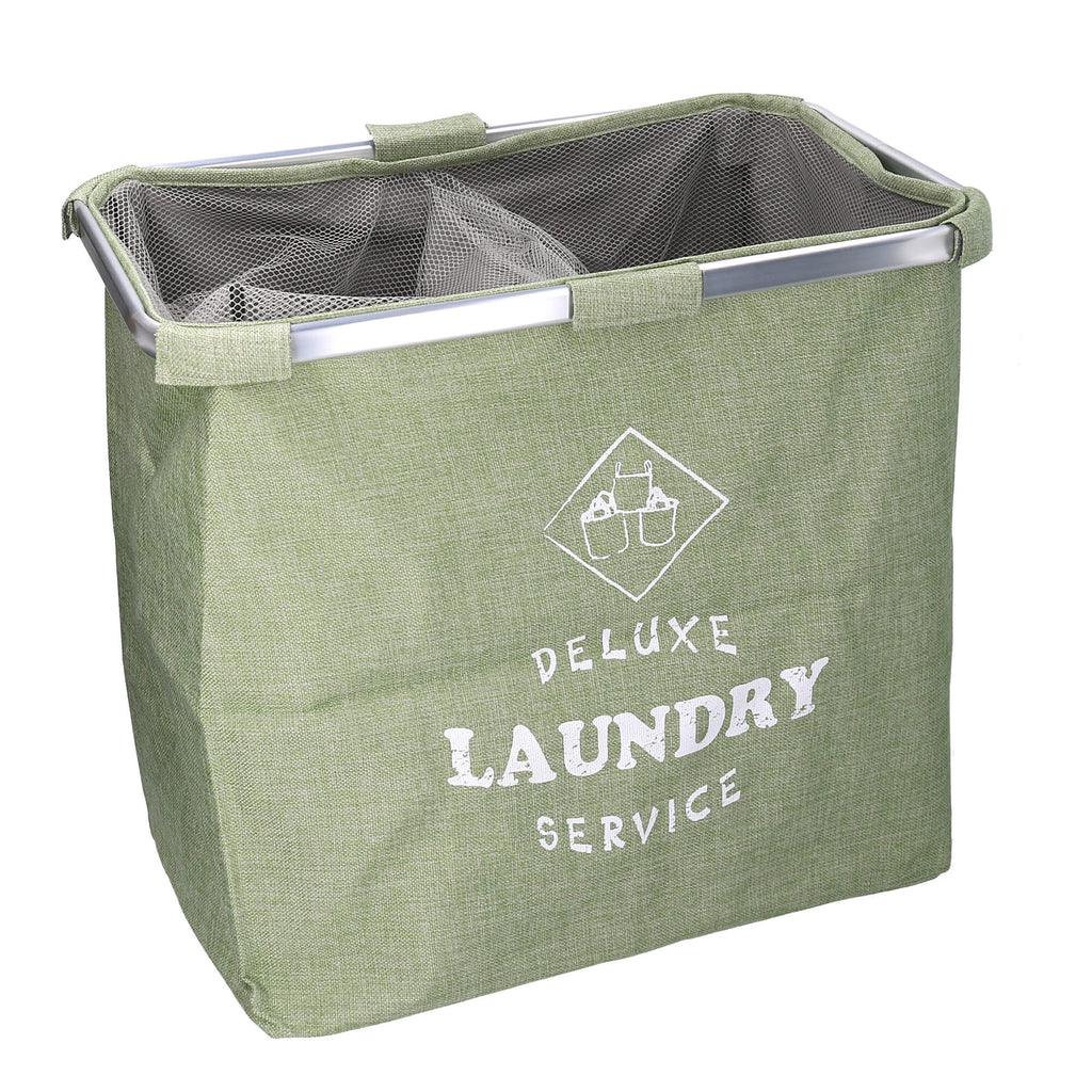 Panier à linge pliable double en tissu de sac vert cm 54x34,5xh50,5