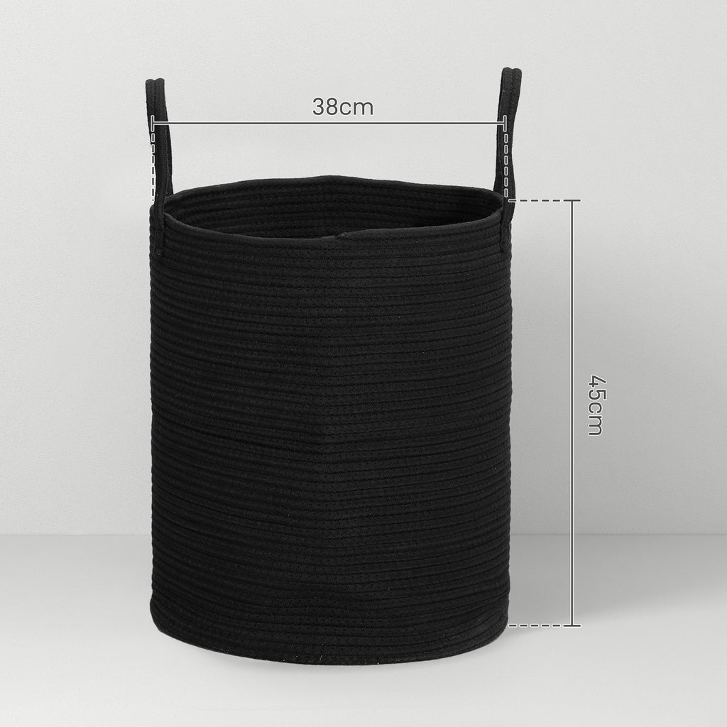 Cesto Portabiancheria Pieghevole con Manici 36L Ø38x45 cm in Cotone Naturale Nero