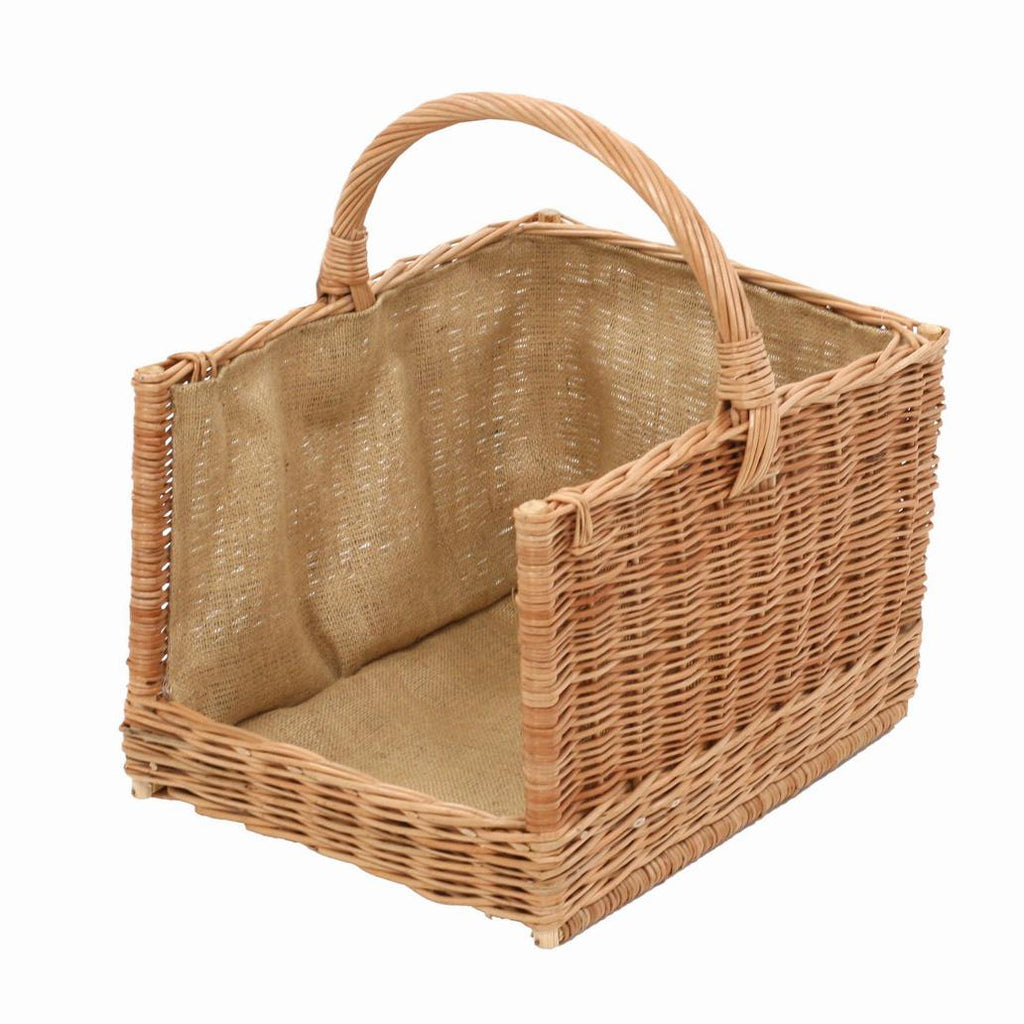 - Panier à bois de chauffage en osier européen avec doublure en jute rectangulaire
