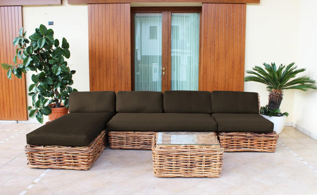 Méridienne Polynésie avec coussins 75x87x170 cm en rotin marron
