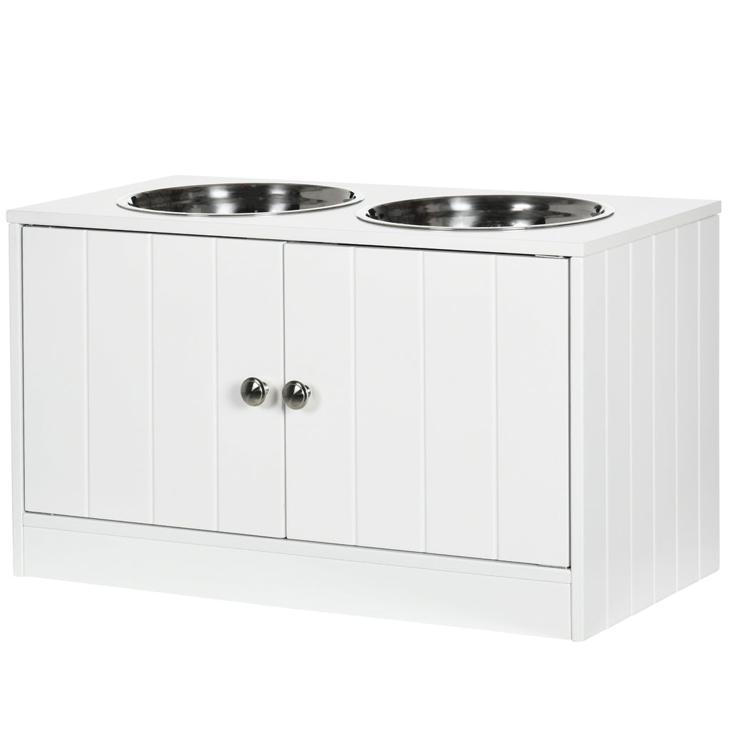 Ciotole per Cani Rialzate con Armadietto da 44L e 2 Ciotole in Acciaio 60x30x35.5cm Bianco