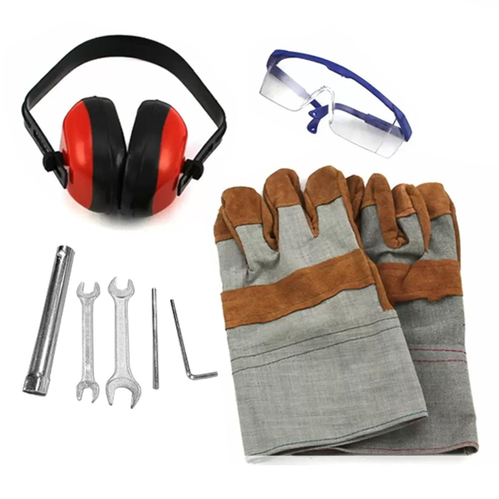 Il trasporto e la movimentazione sono facili e comodi grazie alle ruote e al telaio leggero ma robusto. Ciò consente di spostare agevolmente la macchina tra le aree di lavoro. La dotazione di sicurezza comprende occhiali, cuffie e guanti per operare nella massima sicurezza.