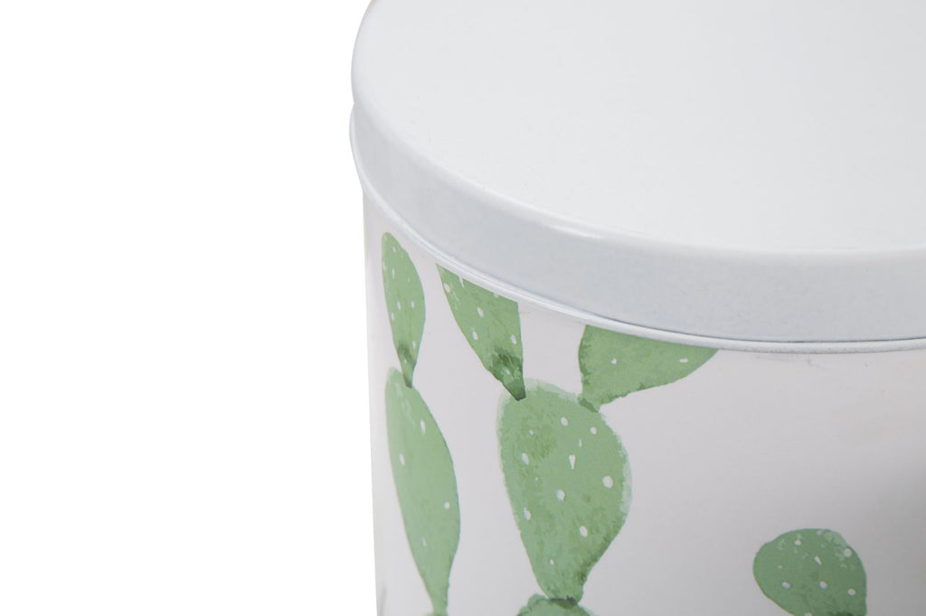 Cactus Tin Boxes Set 3 Pcs Ø15x13,5-14x11,5-12,5x10 cm en Blanc, Vert Fer