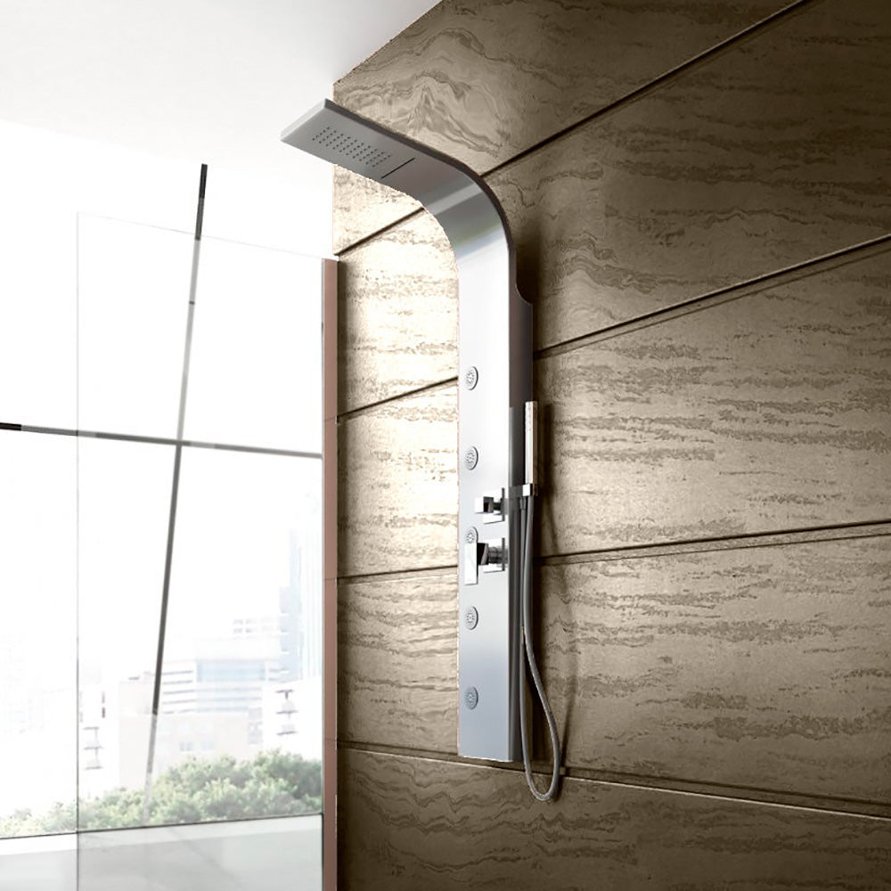 Magnifique panneau de douche d'hydromassage en acier inoxydable brossé avec cascade cervicale et jets d'hydromassage encastrés et réglables. La solution idéale pour les amateurs de douche en toute détente . Belle, robuste, moderne et élégante, elle représente la solution idéale et complète pour votre douche.