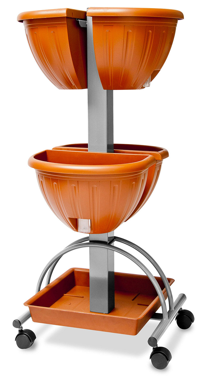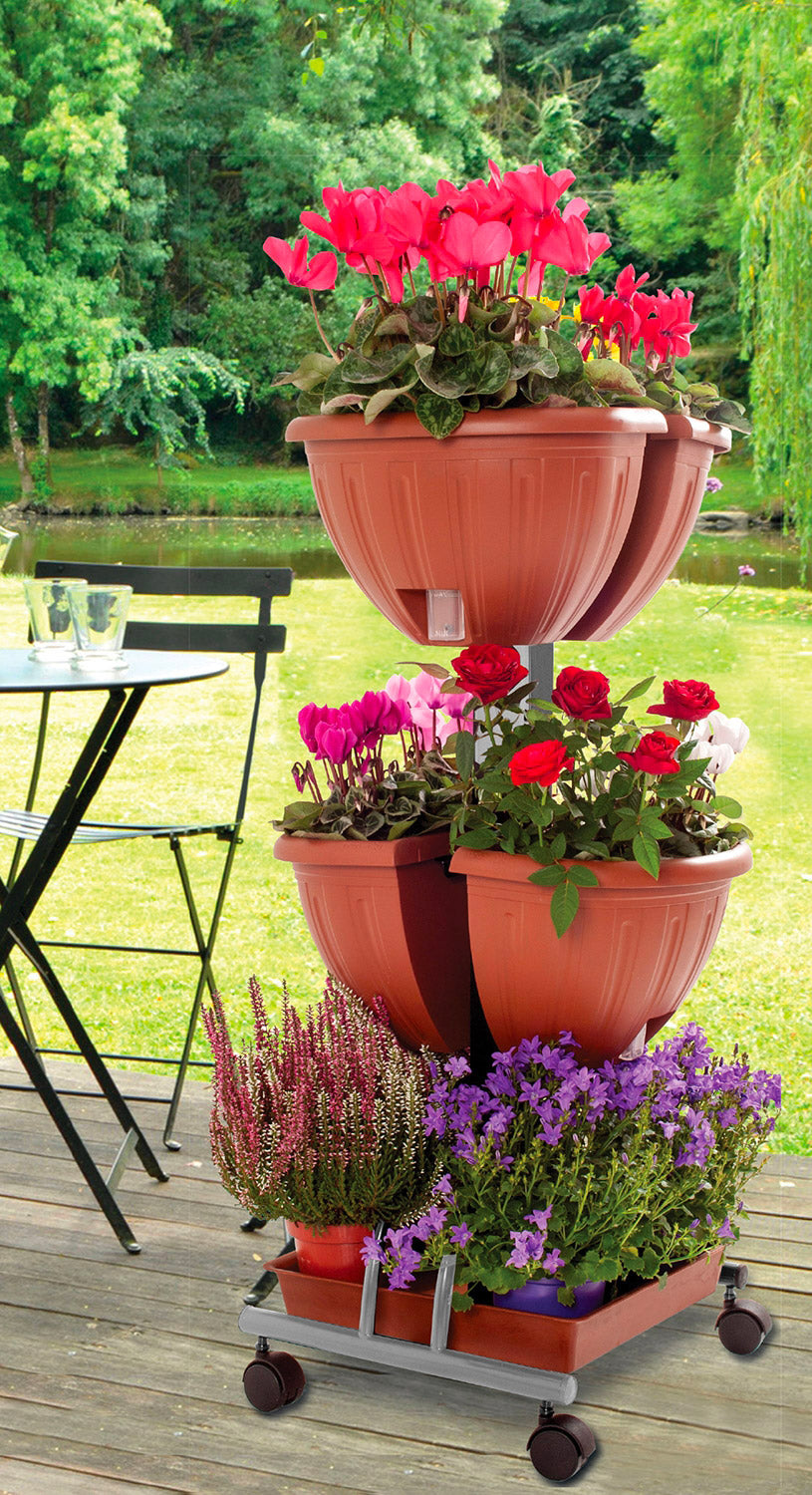 Colonne en acier peint à la poudre de polyester : permet de créer un coin fleuri dans les petits espaces. Le paquet contient quatre pots spéciaux (capacité du pot : 4,2 litres) avec réserve d'eau et un plateau en polypropylène. Les quatre roues pivotantes vous permettent de déplacer la colonne du support pour plantes sans effort.