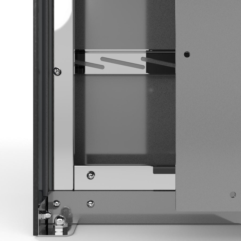 La parte posteriore della colonna del Wallbox Stand presenta un vano spazioso e pratico, ideato per permettere al cliente di fissare agevolmente tutti i componenti elettrici necessari per il funzionamento della wallbox.