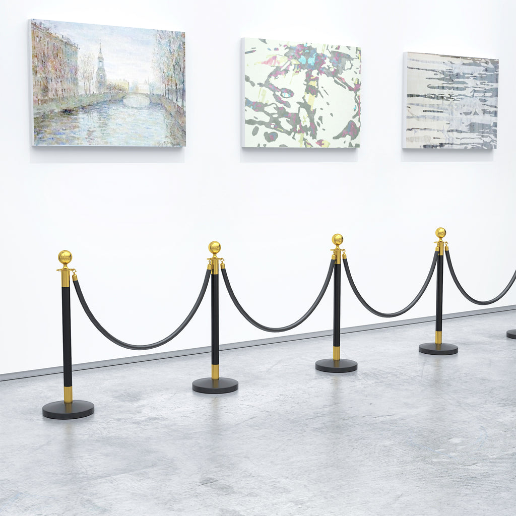 Colonnine segnapercorso con palo in acciaio inossidabile resistente all'acqua e alla ruggine. Corda in velluto nero di 1.5 m, affidabile e di grande impatto visivo. Colonnina segnapercorso con base riempibile con acqua per una posizione stabile. 4 adattatori sul palo e ganci a scatto alle estremità del segnapercorso per consentire un facile collegamento. Adatto per gestire code o decorazioni in vari luoghi ed eventi. Montaggio richiesto.