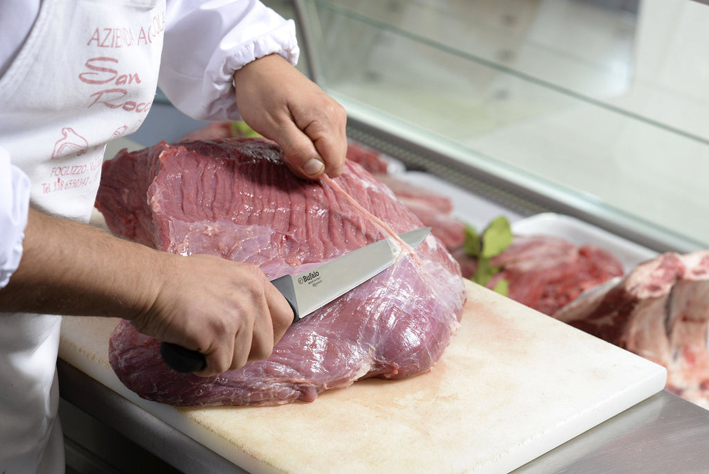 Le couteau de boucher Buffalo est idéal pour retirer la couenne des charcuteries et des jambons. La fabrication artisanale de ce couteau Bufalo assure une élasticité et une dureté optimales de la lame.