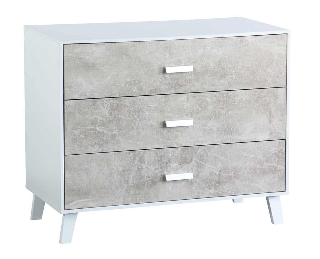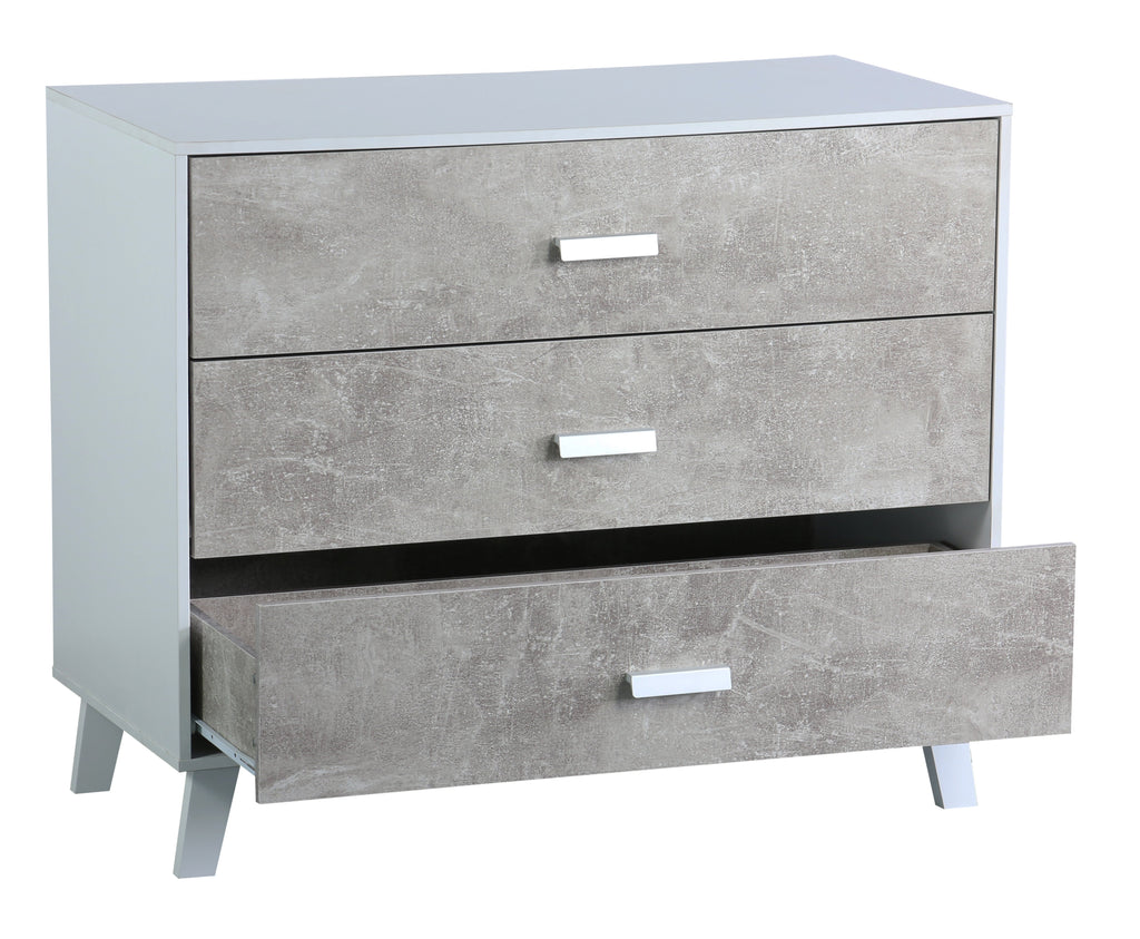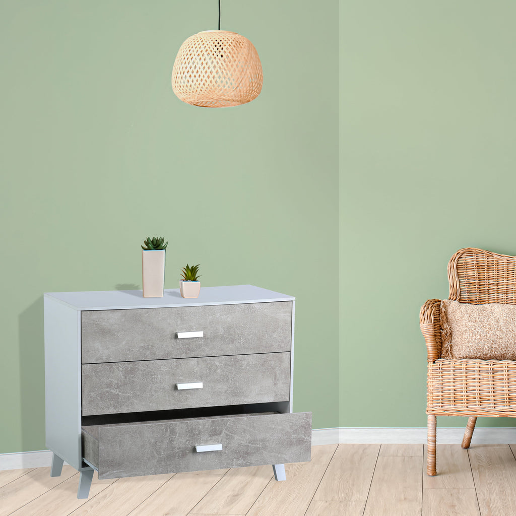 Commode 3 tiroirs 90x40x75 cm en panneau de particules blanc/ciment