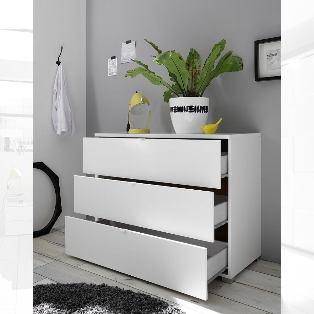 Commode Ottica avec 3 tiroirs laqués blanc mat