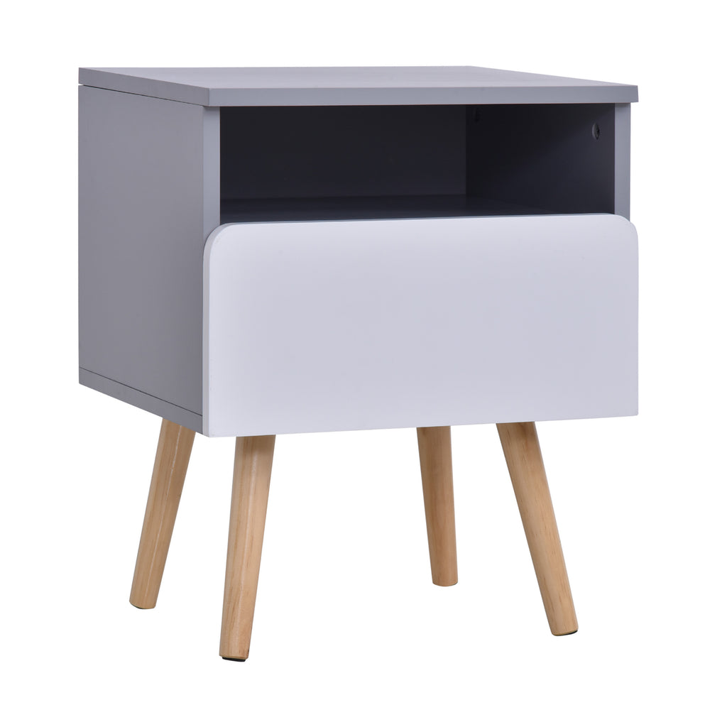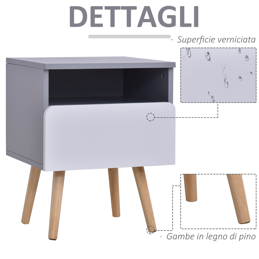 Table de Chevet 1 Tiroir 40x34,3x50 cm en Bois MDF Gris et Blanc