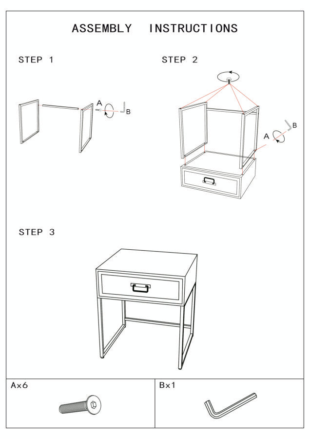 Table de Chevet 1 Tiroir 45x40x51,5 cm en Métal et Bois