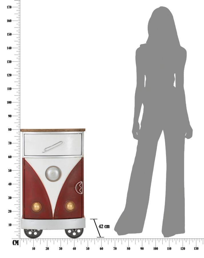 Table de chevet Van 46x42x80 cm en bois de sapin et MDF et en fer rouge et blanc
