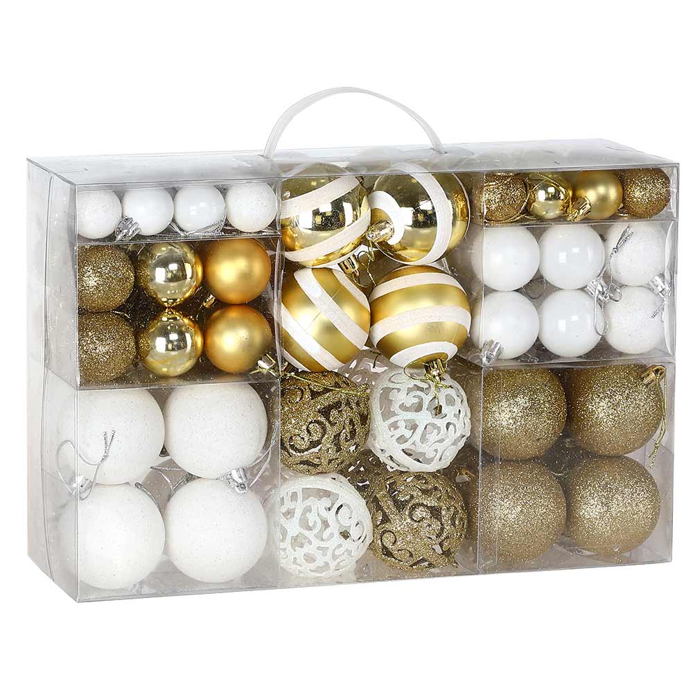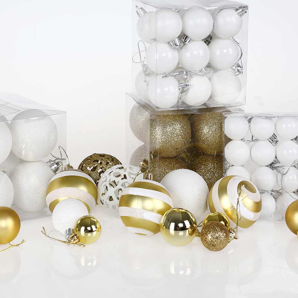 Confezione 100 Palline Natale Oro e Bianco Diametro 3/4/6 cm Addobbo Natalizio