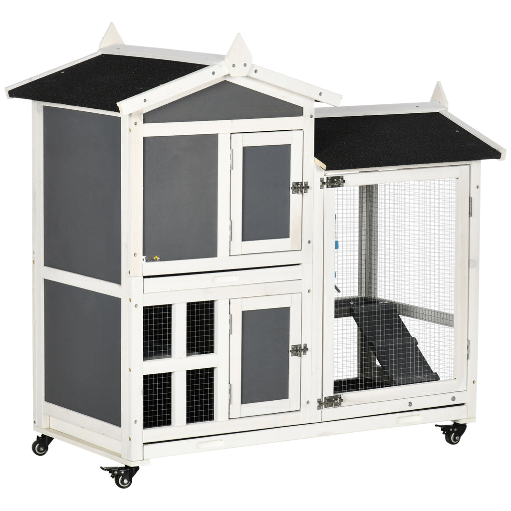 Conigliera 110x60x104 cm in Legno Grigio e Bianco