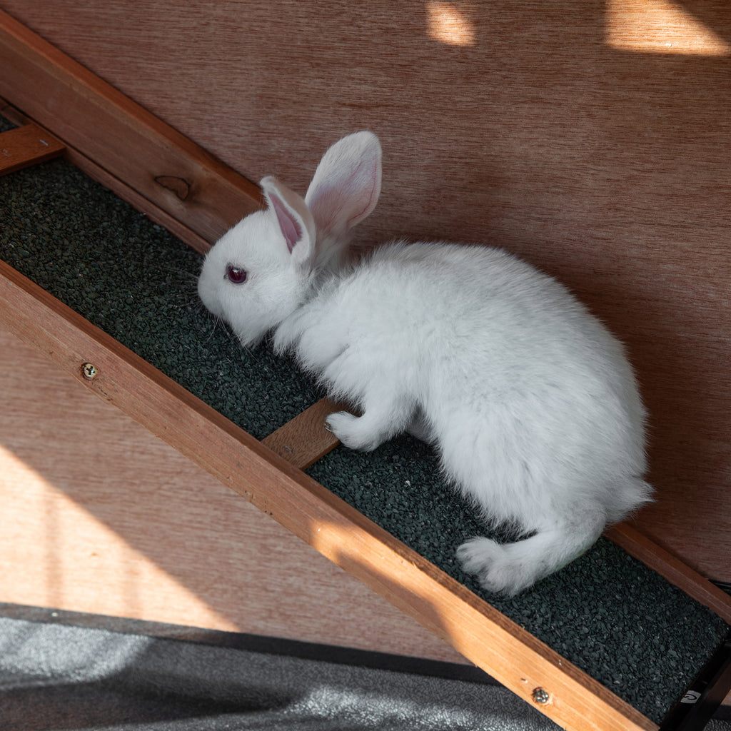 - CONCEPTION PENSÉE : Ce clapier à lapin comprend plusieurs portes et une rampe supplémentaire, permettant à votre lapin d'entrer et de sortir facilement. Le toit peut être ouvert pour observer vos animaux et l'étage supérieur dispose d'une auge pour leur nourriture.
