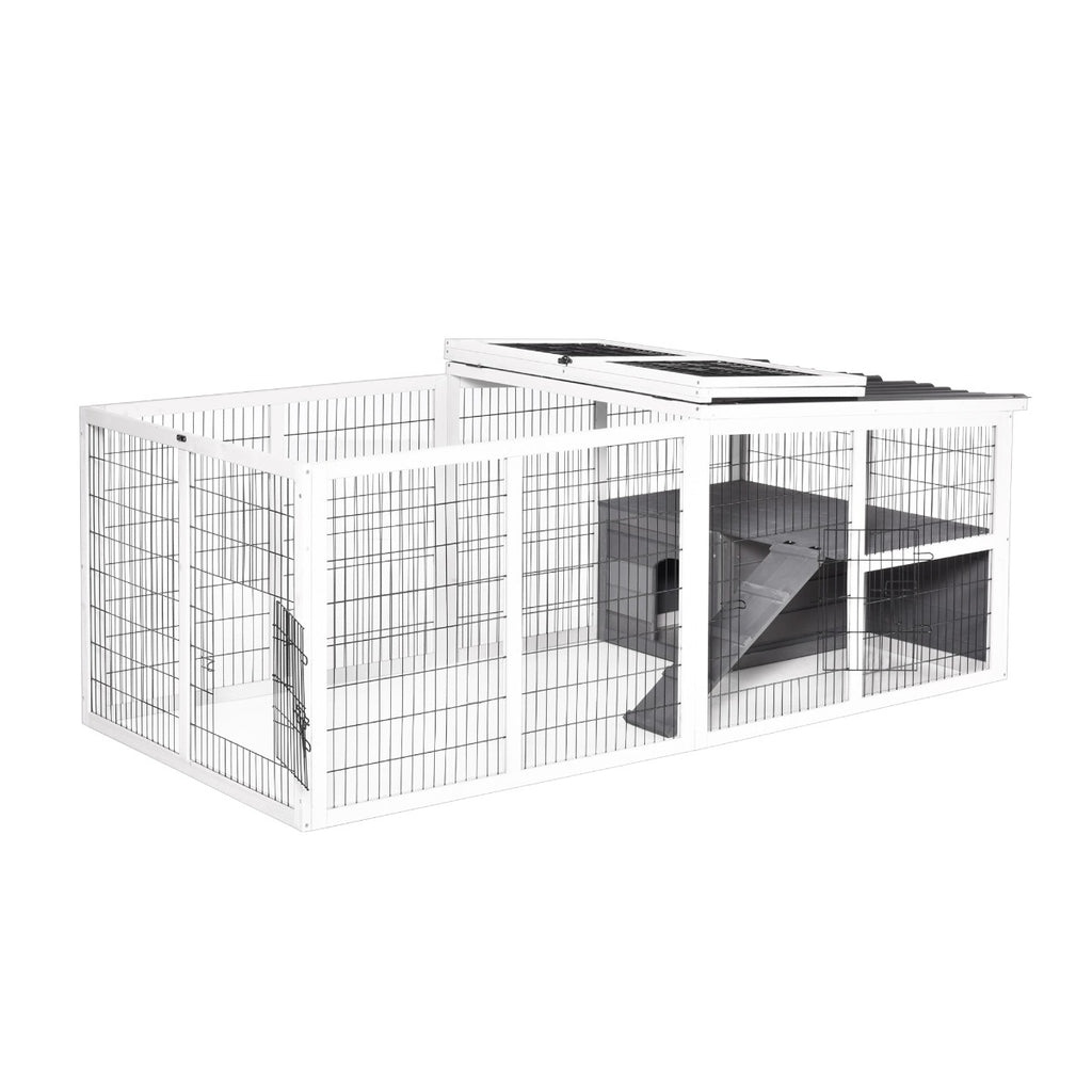 - CAGE POUR 2 À 4 LAPIN : Doté d'une maisonnette, d'un grand espace ouvert et d'un toit ouvrant, ce clapier extérieur est parfait pour vos amis à quatre pattes. Idéal pour les lapins, cobayes, chinchillas et rongeurs.