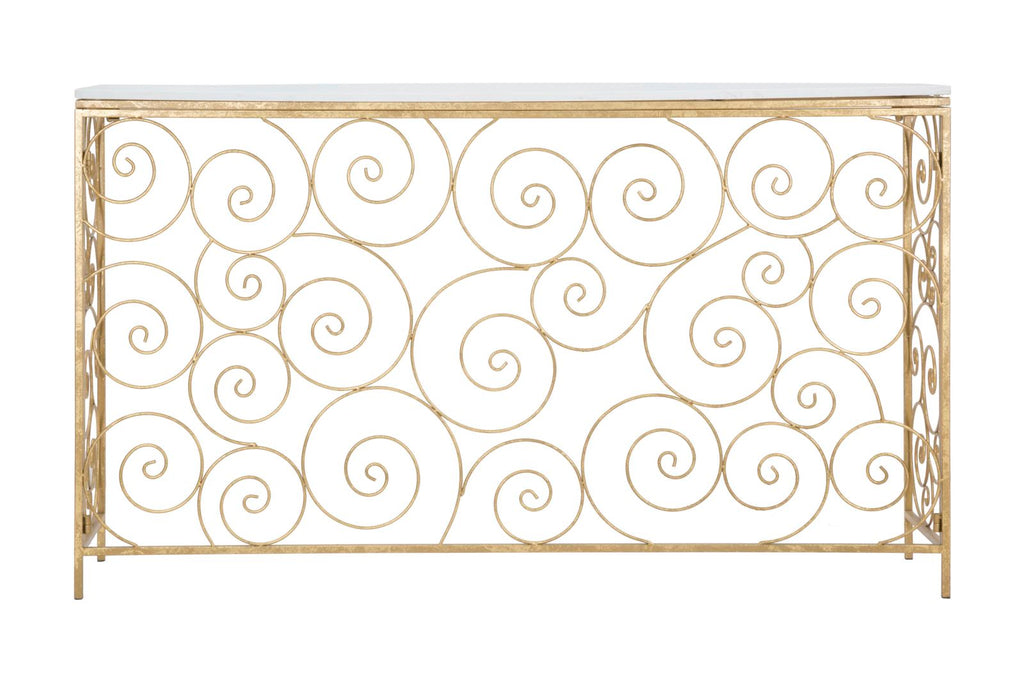 Consol Spiral 140x36x82 cm en Fer et Or et Marbre Blanc
