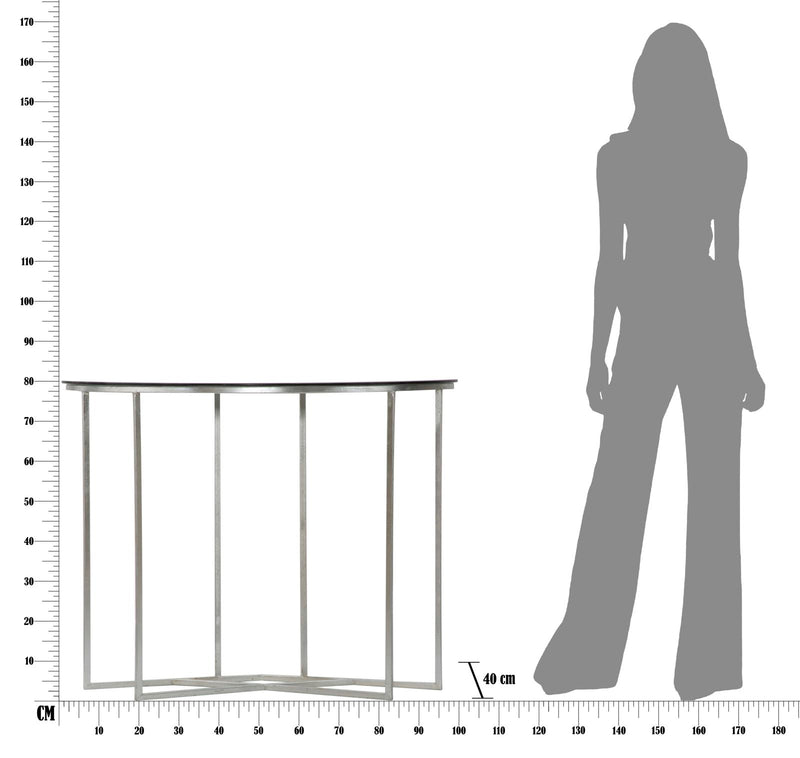 Console Oslo 100x40x80 cm en Fer et Argent et Verre Noir