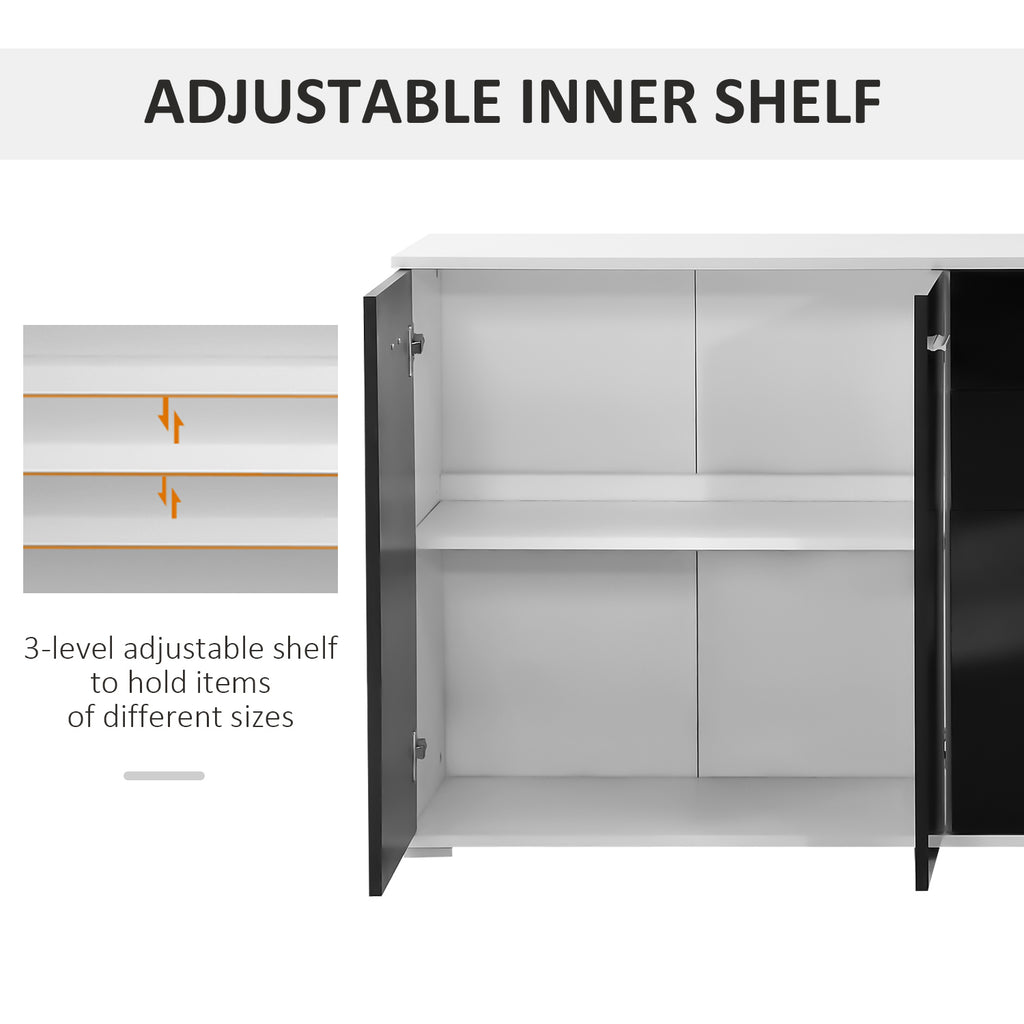 Console 3 Portes 2 Tiroirs 106x76x35 cm en Noir Brillant