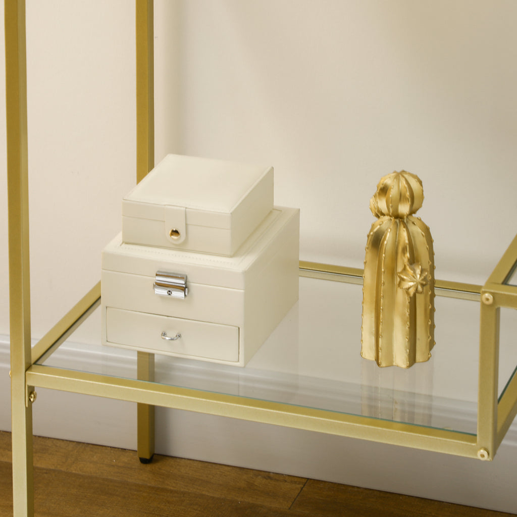 Consolle 3 Ripiani 100x32x76 cm in Acciaio e Vetro Oro