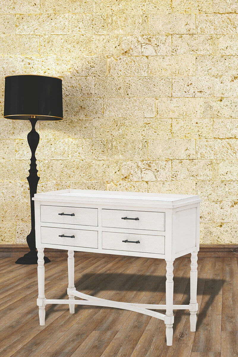 Console 4 Tiroirs 90x38x78 cm en Bois Soriani Blanc Antique