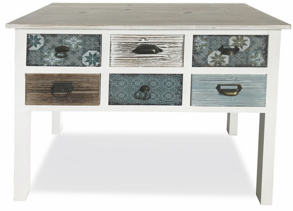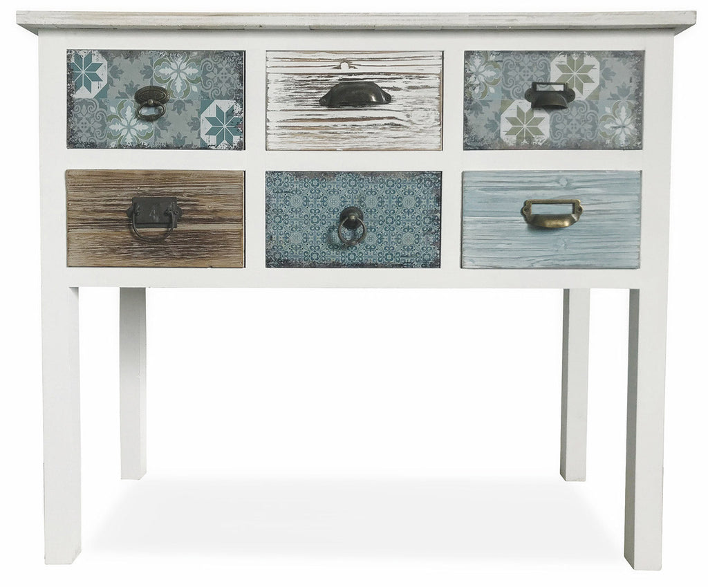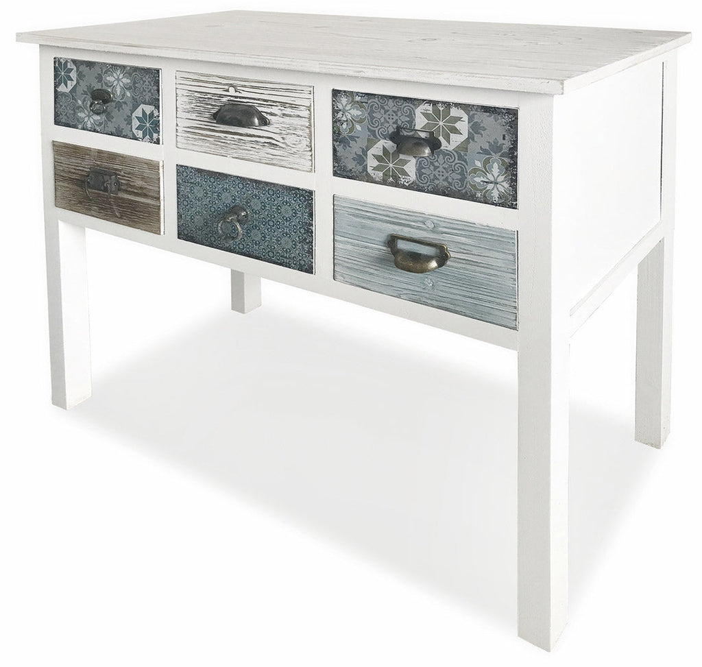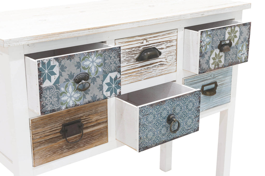 Console 6 Tiroirs 90x38x78,5 cm en Bois Soriani Blanc Antique