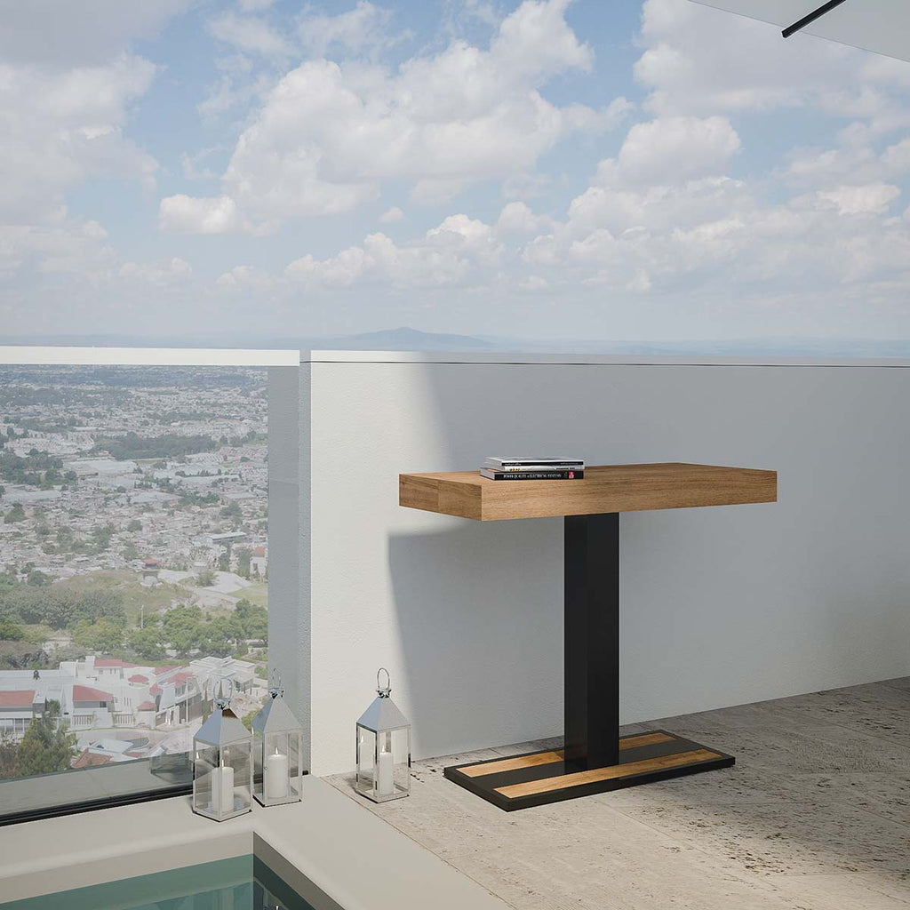 Dimensioni: L.90 P.40 H.77 (allungabile fino a 190 cm).