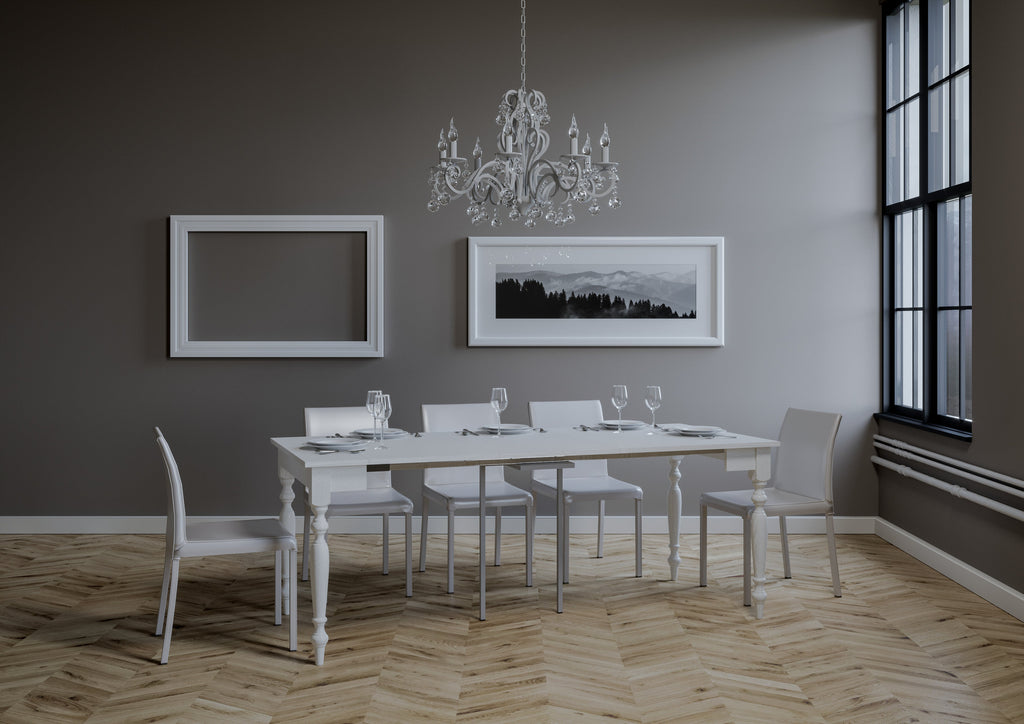 Dimensioni: L.90 x P.48 x H.77 (allungabile fino a 204) cm