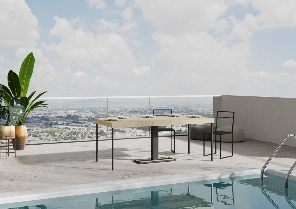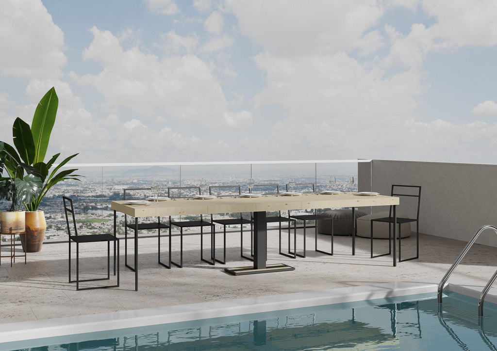 Consolle da esterno Mimosa Premium, con piano e allunghe a Folding, risponde al gusto ricercato di chi ama attorniarsi di un mobilio unico ed emozionante. Per avere a disposizione un mobile per esterno di design, che sappia distinguersi ma sempre rispettando le esigenze, la scelta è la Consolle Mimosa Premium. La versatilità della Consolle Mimosa Premium è una qualità indiscutibile, con praticità e poche mosse si trasforma in un comodo e spazioso tavolo da pranzo, adatta sia per l'interno sia per l'esterno come bordo piscina, giardino e terrazzi. La stabilità è garantita dalla struttura con la quale è realizzata e dal meccanismo di allunghe che permette di creare un tavolo della dimensione che vi è più necessaria senza difficoltà. Un mobile di pregio a un prezzo imbattibile. Made in Italy.