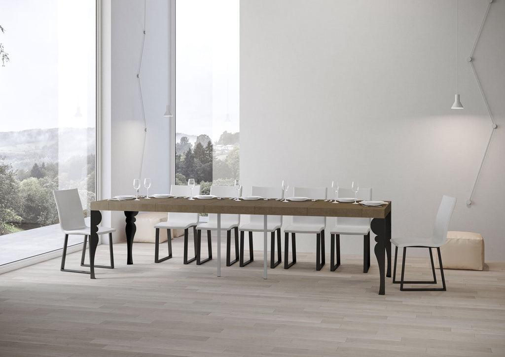 Consolle allungabile Paxon Premium, versatile e robusta, un complemento perfetto per ogni ambiente della casa: ingresso, cucina, sala da pranzo, soggiorno o corridoio. La consolle allungabile Paxon Premium può essere facilmente trasformata in un ampio tavolo da pranzo lungo fino a 300 cm, in grado di ospitare 14 persone. Realizzata con pannelli in nobilitato, gambe in ferro. Il sistema di allunghe con guide telescopiche in alluminio e il sostegno centrale in dotazione rendono la consolle stabile e robusta. Una volta che la consolle è chiusa, le allunghe devono essere riposte altrove.
