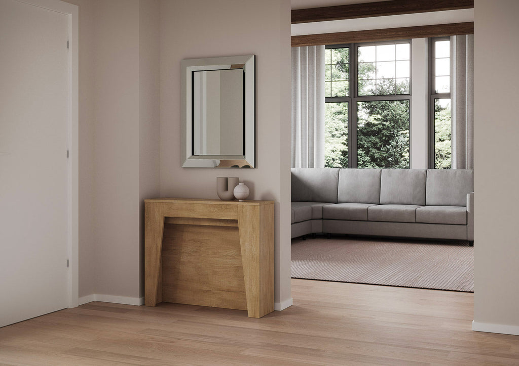 Console Extensible 90x25/211 cm Chêne Anea Nature Panneaux Mélamine
