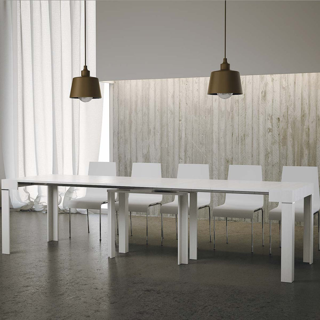 Une console qui en quelques mouvements faciles se transforme en une table capable d'atteindre différentes tailles, jusqu'à 3 mètres.